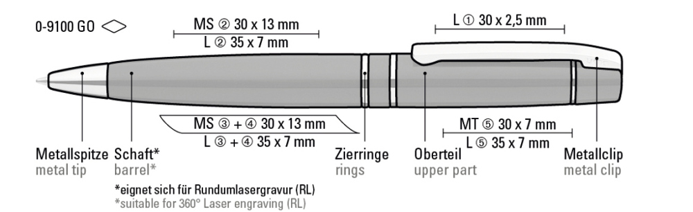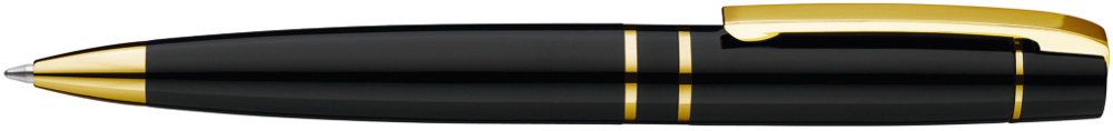 Metall-Drehkugelschreiber mit Softdrehmechanik und gefedertem Clip. Beschlagteile vergoldet.