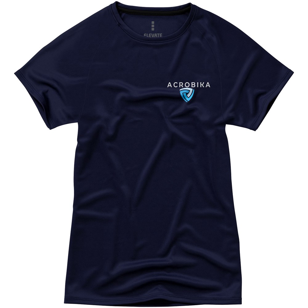 Das Niagara Kurzarm-T-Shirt für Damen ist perfekt für jede aktive Gelegenheit. Dieses T-Shirt besteht aus 100% atmungsaktivem und feuchtigkeitsableitendem 145 g/m2 Polyestergewebe und hält Sie kühl und trocken. Die Raglanärmel und das heat transfer Nackenlabel sorgen für zusätzliche Bewegungsfreiheit, ohne die Haut zu reizen. Damit Sie sicher sind, wurden reflektierende Details für zusätzliche Sichtbarkeit hinzugefügt.