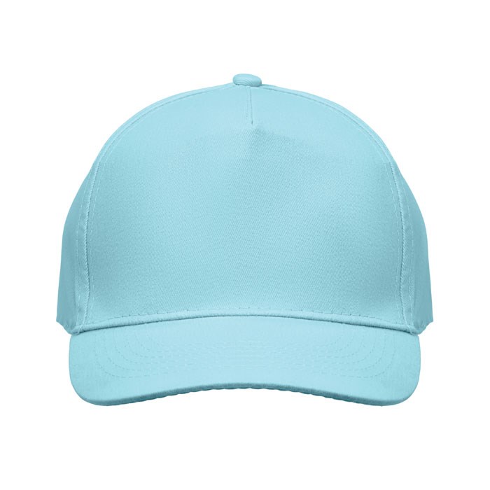 5-Panel-Baseball-Cap aus Baumwolltwill 180 g/m² mit verstellbarem Klettverschluss. Zwei farblich abgestimmte, umstickte Belüftungslöcher. Größe 7 1/4.