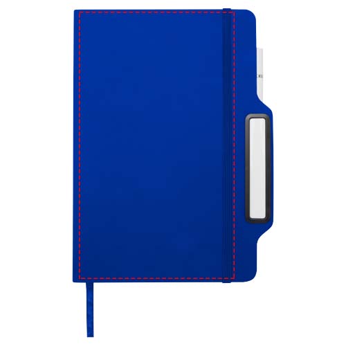Das Nexus A5 Hardcover Notizbuch mit Stift/Bleistift-Kombi umfasst 80 cremefarbene, linierte Seiten aus 70 g/m² Papier, abgerundete Ecken, einen elastischen Verschluss und ein Lesebändchen. Der Stift hat zwei Köpfe, von denen der eine ein Füller mit schwarzer Tinte und der andere ein Bleistift ist. Schreiblänge des Stiftes: 1000 Meter. Schreibspitze: 1 mm.