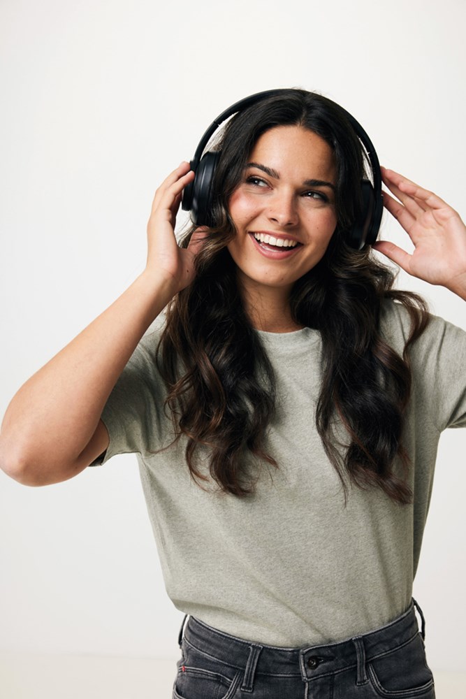 Faltbarer kabelloser Kopfhörer mit starkem Bass. Hergestellt aus RCS (Recycled Claim Standard)-zertifiziert recyceltem Aluminium und ABS. Gesamter Recyclinganteil: 70% basierend auf dem Gesamtgewicht des Artikels. Die RCS-Zertifizierung gewährleistet eine vollständig zertifizierte Lieferkette der recycelten Materialien. Aluminium verliert seine Eigenschaften im Recyclingprozess nicht und kann daher endlos recycelt werden. Inklusive Type-C-Ladekabel aus RCS-zertifiziert recyceltem Aluminium, TPE und PET. Der 600mAh-Akku ermöglicht eine Spielzeit von bis zu 15 Stunden und kann in 2 Stunden vollständig aufgeladen werden. Mit BT 5.3 für eine stabile Verbindung auf bis zu 10 Meter. Mit Mikrofon zum Annehmen von Anrufen. Verpackt in FSC®-Mix-Verpackung. Artikel und Zubehör 100% PVC-frei.