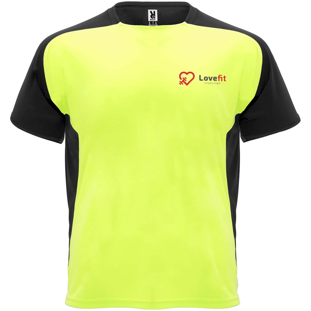 Funktions-T-Shirt aus atmungsaktivem Stoff. Rundhalsausschnitt mit passenden verdeckten Nähten. Raglanärmel und Kontrasteinsätze an Arm und Seitenteilen. Abnehmbares Etikett.