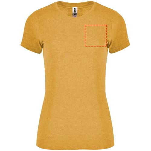 T-Shirt mit meliertem Effekt. Tailliertes Design. Rundhalsausschnitt aus 1×1-Rippstrick mit innenliegenden, verstärkten und verdeckten Nähten. Schlauchförmiger Stoff. Abnehmbares Etikett.