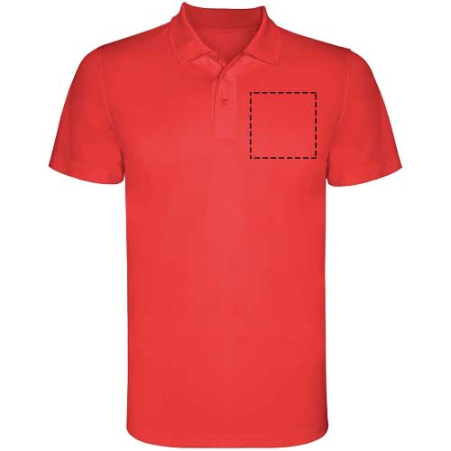 Kurzärmeliges Funktions-Poloshirt. Gestrickter Kragen mit 3-Knopfleiste. Atmungsaktives, leicht zu waschendes und zu trocknendes Material. Herausnehmbares Etikett. Technisches Gewebe. Atmungsaktiver Stoff. Das Modell ist 184 cm groß und trägt Größe L.