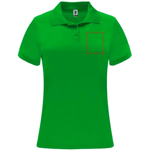 Kurzärmeliges Funktions-Poloshirt für Damen. Gestrickter Kragen mit 3-Knopfleiste. Figurbetonte Passform. Atmungsaktives, leicht zu waschendes und zu trocknendes Material. Herausnehmbares Etikett. Technisches Gewebe. Atmungsaktiver Stoff. Das Modell ist 173 cm groß und trägt Größe S.