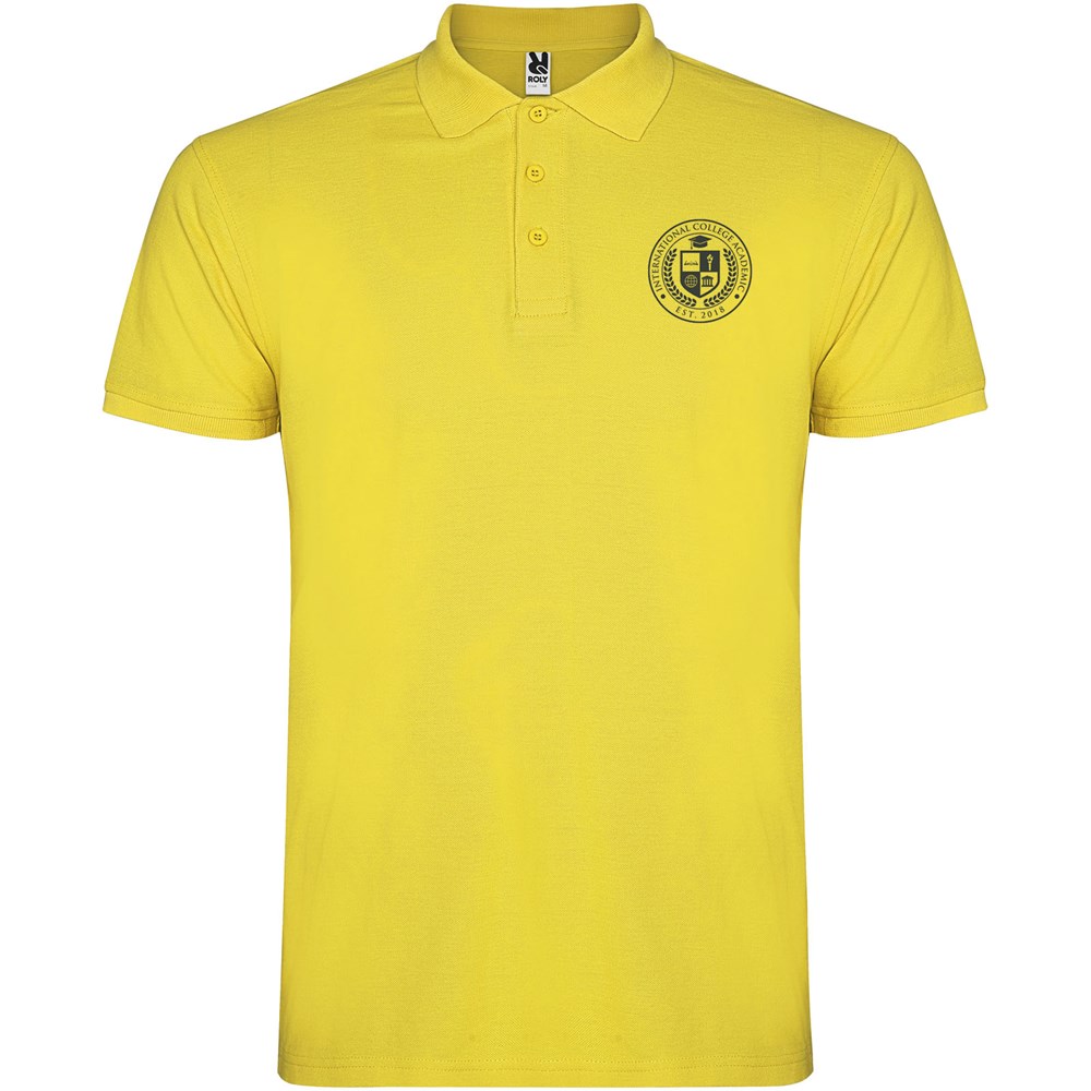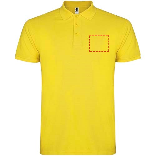 Kurzärmeliges Poloshirt für Kinder. Verstärkte und verdeckte Nähte am Innenkragen. 1x1 Rippstrickbündchen an Ärmeln und Kragen. Seitennähte. 3-Knopfleiste und Seitenschlitze. Optionale Tasche. Herausnehmbares Etikett. Das Modell ist 124 cm groß und trägt Größe 5/6.