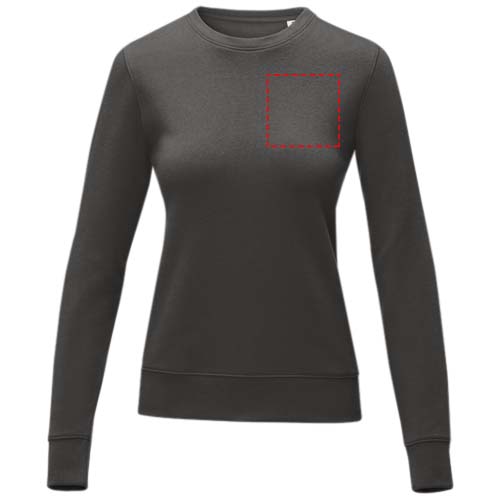 Der Zenon Damenpullover mit Rundhalsausschnitt kombiniert Komfort mit einem klassischen Design. Hergestellt aus einer 240 g/m² schweren Mischung aus Baumwolle und Polyester. Der klassische Rundhalsausschnitt wird durch flach gestrickte Rippdetails am Kragen, an den Ärmelbündchen und am unteren Saum akzentuiert, die für einen bequemen Sitz und einen Hauch von Raffinesse sorgen. Außerdem können Sie die Innenseite des Pullovers mit Ihrem persönlichen Branding versehen. Die gebürstete Innenseite sorgt für zusätzliche Gemütlichkeit und ist damit perfekt für kältere Tage. Mit seinem durchdachten Design und den hochwertigen Materialien ist der Zenon Pullover ein vielseitiges Essential, das Ihrem Look einen Hauch von Individualität verleiht und gleichzeitig für maximalen Komfort sorgt. Dieser Pullover hat eine taillierte Form für einen femininen Look.